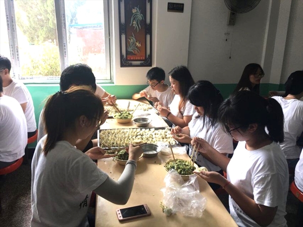 坐在床明几净的丽岙敬老院,实践队员们围桌而坐,齐聚一堂,灵巧的双手加之炽热的真情拈造出个个动情的饺子。制作饺子的过程队员们讨论和思索“养老”的真正内涵,最终汇聚成四个词:老有所依,老有所娱,老有所乐。为缩短与老人的距离以及加强与老人之间心灵的交流,队员亲手为老人端起煮好的饺子。用微笑以及真诚的态度克服语言的障碍,轻触老人心灵,让老人们内心的空虚得到填补,得到“不是家人,胜似家人”般的关怀。