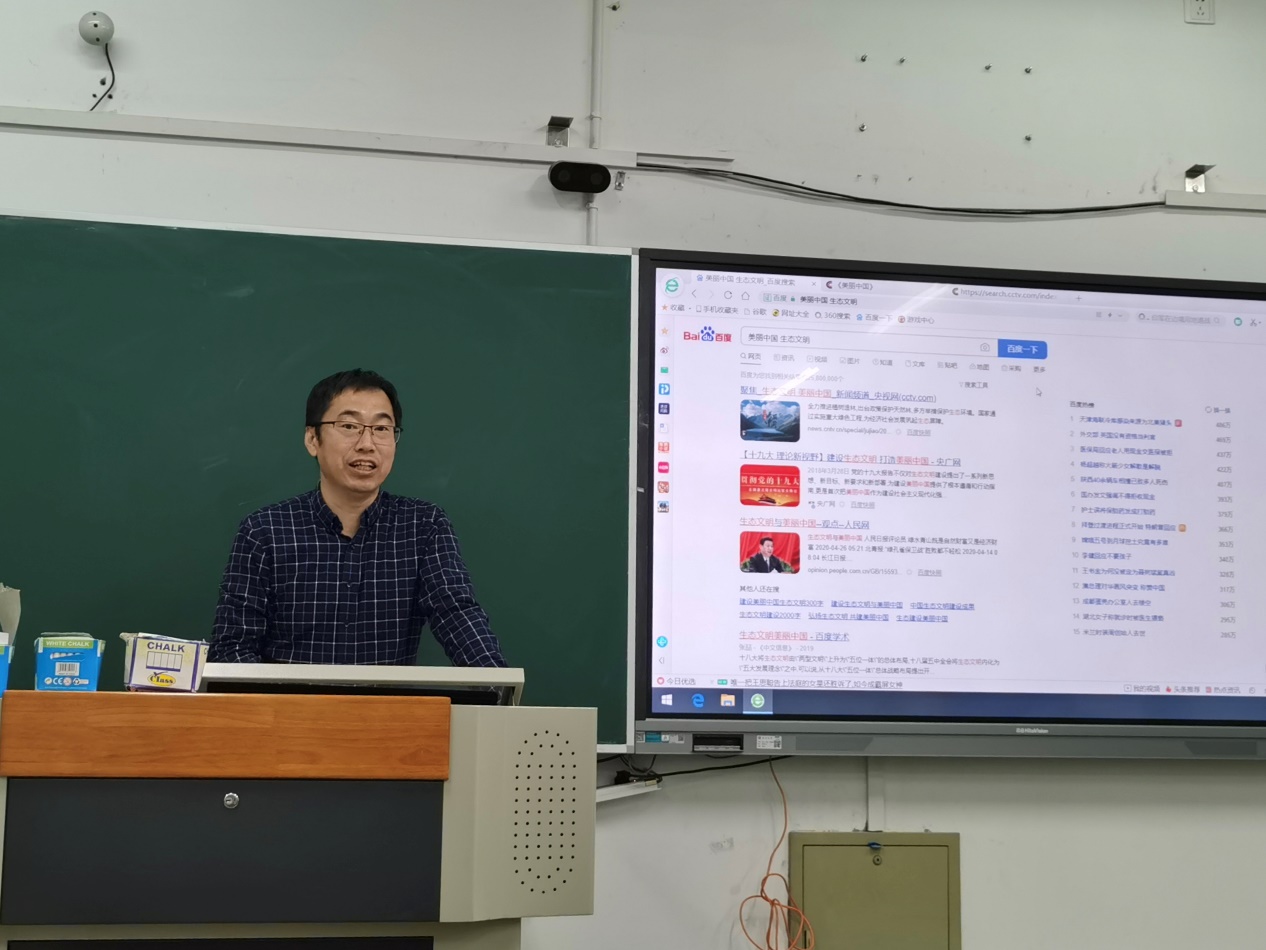 第二场专业宣讲中,王主任为同学播放了《美丽中国》第四集:生态文明之路,向我们展示了中央对生态文明改善与保护的重视,以及通过多年的努力中国生态环境的巨大变化。王主任还通过视频向我们介绍了水污染治理方面的成就,增强了同学们在本校学习环境工程的自信。