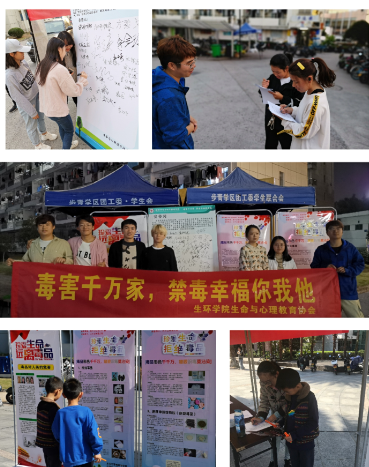 2019年11月16日,生命与心理教育协会分别在A,C,E区开展了“毒害千万家,禁毒幸福你我他”禁毒宣传活动。活动现场气氛活跃,志愿者们积极宣传禁毒安全知识,对周边路过的同学、老师、小朋友都进行了详细地讲解。通过此次活动,既让参加讲解的志愿者们深刻认识到了禁毒的重要性,同时也让过往人群了解了禁毒方面的知识。