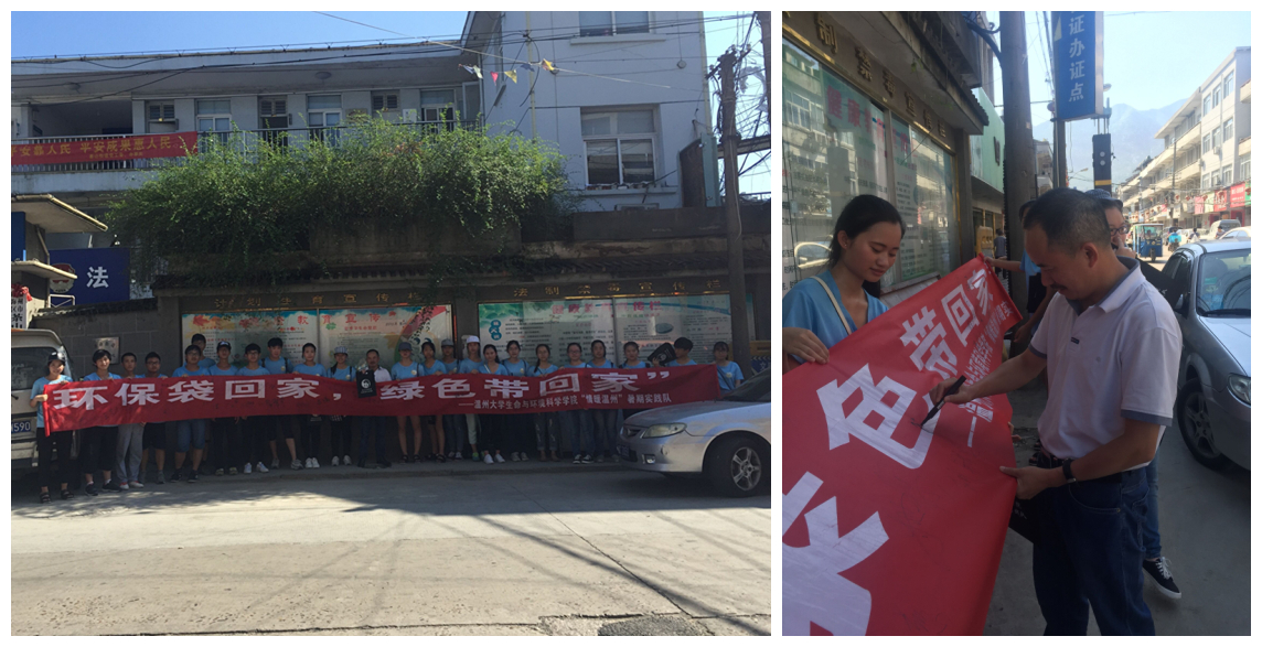 7月15日上午,陈华林副经理来到情暖温州暑期社会实践队实践地点进行慰问,与同学们进行交谈,询问实践情况,并在写有“环保袋回家,绿色带回家”的横幅上签字,与同学们一起宣传环保,倡导绿色生活。该实践队主要针对公益与环保这两个方面向温州市民展开一系列的活动。向全市人民宣传公益、环保的概念。
