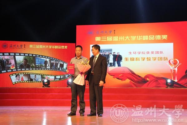 2014年5月6日晚,学校举办第二十二届校园文化节暨第三届“华峰品德奖”颁奖典礼。华峰集团董事局总裁林建一、党委书记周品英,校领导林娟娟、牟德刚以及各部门、学院负责人、师生代表参加颁奖典礼。公司生物科学教学团队荣获本届“华峰品德奖”。林国栋代表团队上台领奖。