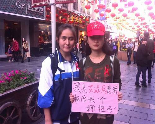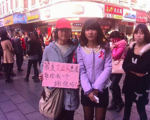 12:50志愿者们在太阳成集团tyc33455ccwww东站集合,负责人将志愿者们分配为三组选出每组的组长,并向志愿者们述说每一组的工作。到达目的地五马街,在负责人的带领下三组志愿者出发了。第一组志愿者负责发预防艾滋病的传单并给路人戴红丝带;第二组志愿者由组长派出一人胸前挂“如果我是艾滋病人,你愿意和我拥抱吗”的牌子,说服路人与挂牌者拥抱,并请路人在本子上签上自己的姓名,以表示对“世界艾滋病”日的支持;第三组志愿者负责去附近商铺宣传,并为他们送上赠品。在本次活动中志愿者们尽心尽力,热情的为路人讲解艾滋病的预防知识。17:00预防艾滋病宣传活动圆满结束。