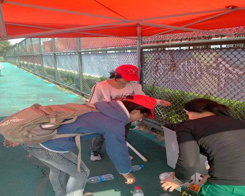 10月23日至25日的每天11:40,“生命曙光”青年志愿者社的成员头戴志愿者帽,在北校小门与招募的志愿者集合。发放好垃圾袋后,大家一起赶往北校操场的看台进行打扫,清洁完自己学院的看台后,志愿者们又顺便打扫了附近的其他看台。接着,大家又一起打扫了北校的篮球场。树缝,拐角,志愿者们不放过每一个角落,为接下去的运动会提供了一个整洁的场地。10月23日至25日的每天16:40,志愿者们依照上午的活动进程,清扫看台和篮球场,给第二天的运动会带来整洁的面貌。夕阳下的运动场不再是“西风卷纸屑”的场景。