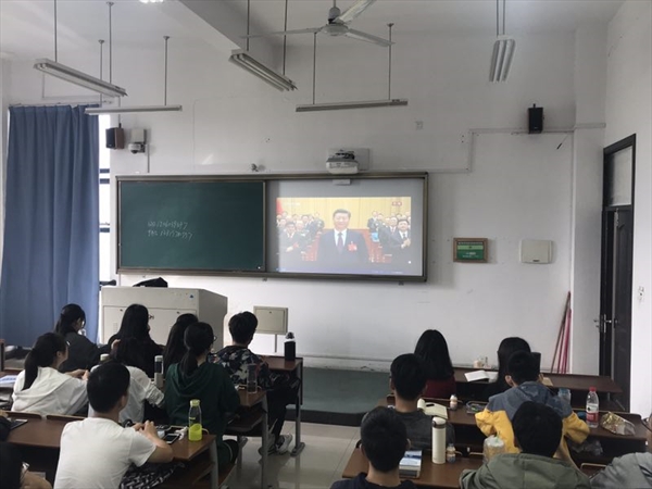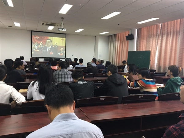 在收看整个开幕式的过程中,全体人员聚精会神,认真收看了习近平总书记所作的报告。大家都对党和国家近年来的快速发展感到无比喜悦。有的还边看边作记录,不时为总书记的报告所打动,所鼓舞。学院师生们纷纷表示,要以实际行动学习贯彻好党的十九大精神,不忘初心,牢记使命,高举中国特色社会主义伟大旗帜,锐意进取,埋头苦干,为决胜全面建成小康社会、夺取新时代中国特色社会主义伟大胜利、实现中华民族伟大复兴的中国梦而努力奋斗。