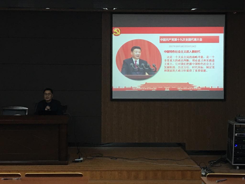赵崇峰书记先简单地介绍了十九大的一些重要内容。十九大的召开也预示着中国特色社会主义进入了新时代,对中国的未来进行了新部署,这次十九大还有一个重要内容修改了党章,实现了党的指导思想的又一次与时俱进。习近平新时代中国特色社会主义思想确立为党的行动指南。