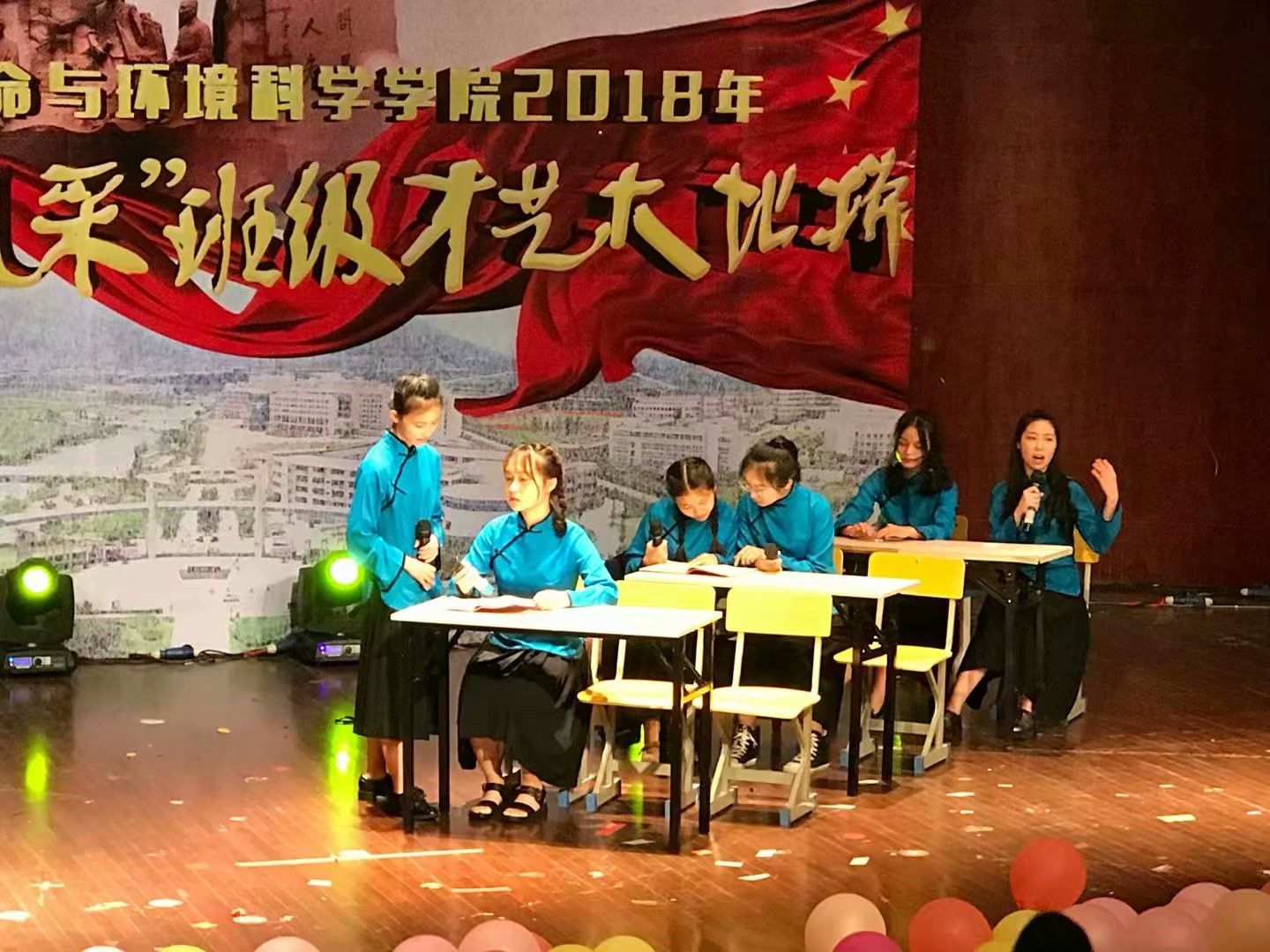 活动开始,由16生科带来的小合唱《致生环的你》与17生环1班表演的舞蹈《咏春》,令人不觉慨叹青春年月莫伤悲,别辜负眼前季节。16环科带来的魔术《白日狂想》用奇妙的构想将大家带入了魔术的世界。17生科带来了舞台剧《五四!五四!》表演生动自然,展现了那个时代青年女员工们高尚的爱国情操,也令在场的同学们心潮澎湃。来自16生技的情景剧《Dream High》为我们表演了光影中的匆匆四年光阴,让人回味无穷。最后由17生环3班带来的《相亲相爱》点燃了全场,为整场比赛画上了完美的句号。
