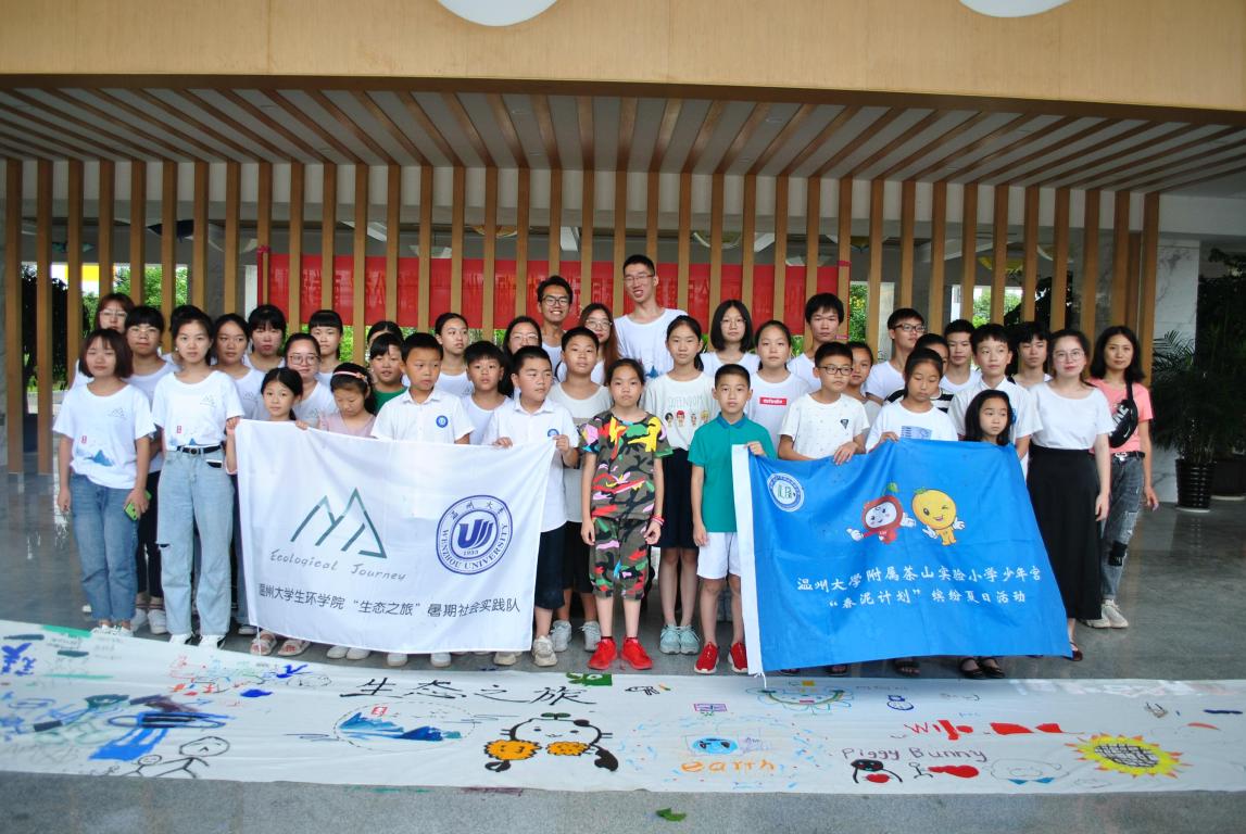 实践活动的第一篇章:教育篇——幼教启明,环保从娃娃抓起。这是在太阳成集团tyc33455ccwww茶山附属小学与孩子们度过充实又快乐的六天,这段时间里,与孩子们进行的每一项活动都经过了实践队成员的认真思索,让孩子们在游戏中学习生态环保的相关知识,更加绿色地生活、学习。DIY环保袋、寻找生态树与认识校园植物,让孩子们充分发挥创造力,树立生态意识;观看环保影片,并积极探索垃圾分类相关知识,通过寓教于乐的方式帮助孩子们理解垃圾分类重要性,树立环保意识;生态运动会、绘制叶脉书签与纸扇、进行污水处理实验,孩子们在动手操作的过程中拓宽了知识面,体会到了更多的环保理念。最后,实践队成员与孩子们一起绘制十米画卷,在画布上描绘着这些天的收获、成长与快乐。