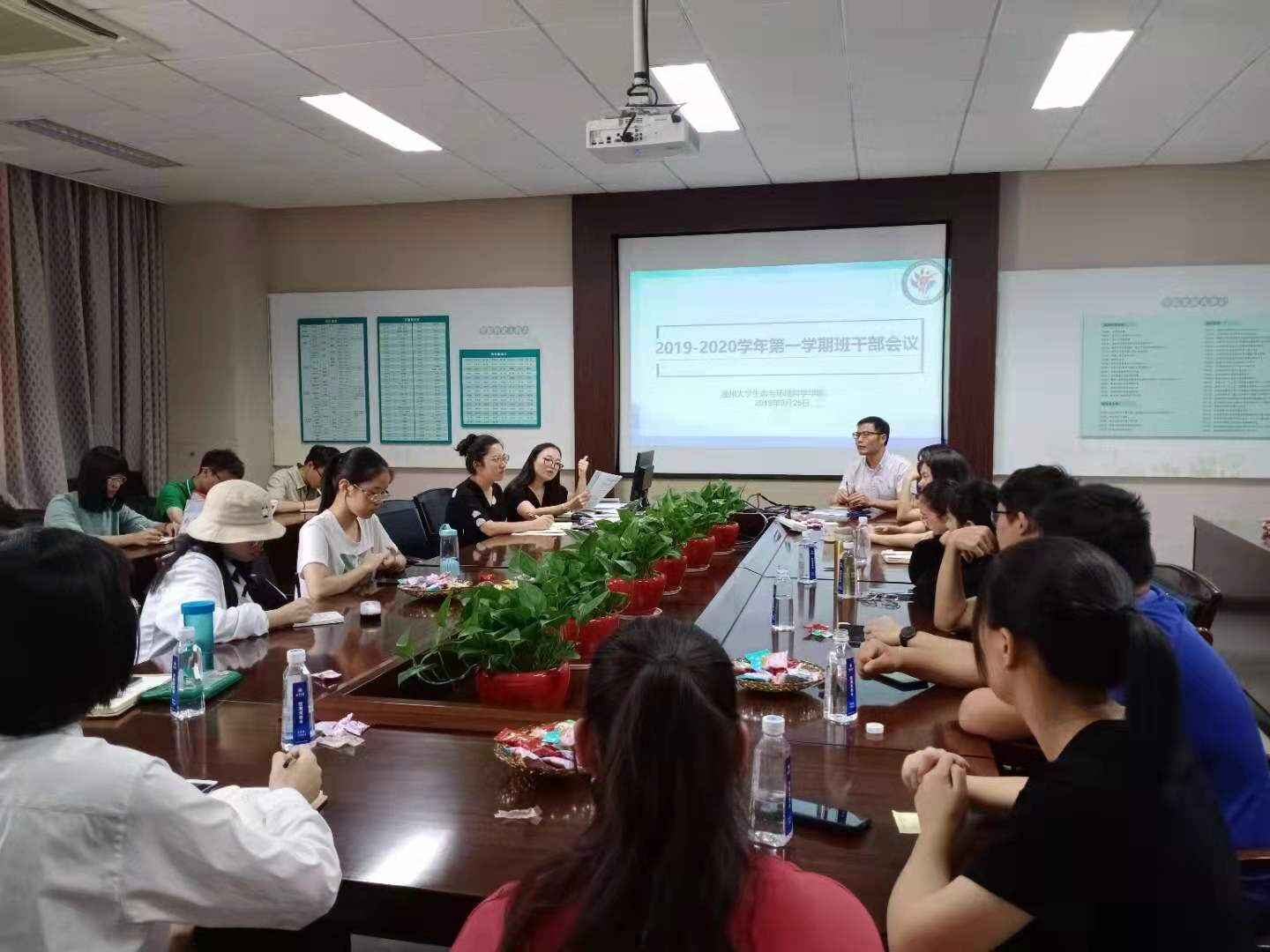 会议开始,辅导员梁家琳老师提到了员工积极性的问题,并向17、18级班委确认了各班生科竞赛的报名情况。梁老师表示班委不仅应该调动班级同学参与各项赛事的积极性,更应该督促同学认真完成从报名开始到比赛结束的全过程。随后梁老师也对国庆放假时间和大一晚自习的安排做了说明。