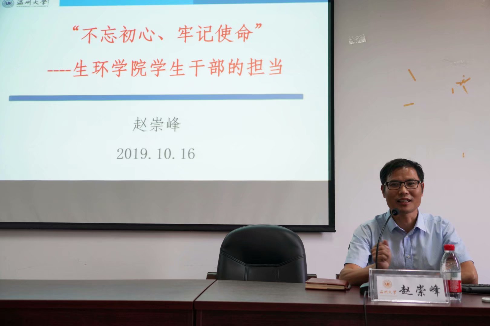 本次培训课,赵书记将党学课程与团学课程相结合。首先,赵书记先向同学们介绍了公司正在聚焦“‘省市共建’省重点建设高校、博士学位授予单位、以侨为特色的‘省部共建’高校”三大目标,创建具有鲜明特色、国内知名的高水平教学研究型大学,既加深了同学们对学校的了解,也加强了大家身为温大人的自豪感。随后赵书记也强调了员工干部的初心,是为同学服务,为学院服务,也对员工干部的内涵、定义和作用作出了阐释。他指明员工干部是优秀员工的代表、是员工的带头人、是员工的代言人,是学校育人工作的最基层执行者、主要协助者。