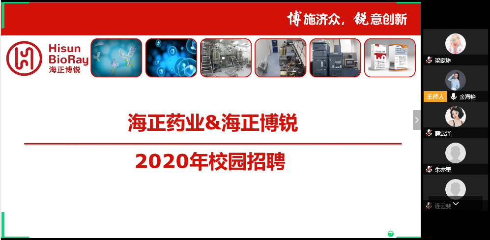 3月27日晚上,公司诚邀浙江海正药业股份有限公司在腾讯会议上为90余名本科生和研究生举办了一场空中宣讲会。会议由浙江海正药业股份有限公司人力资源部主任柏力华担任主讲。