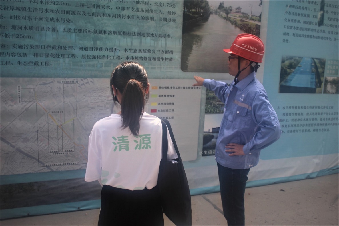 在本次实地参观中,实践队成员与治水工程有了一次近距离的接触,为了便于后期检测水质,实验组的成员沿路采集水样,并对不同河道的水做好标注。采集中,大家互相帮助,齐心协力。