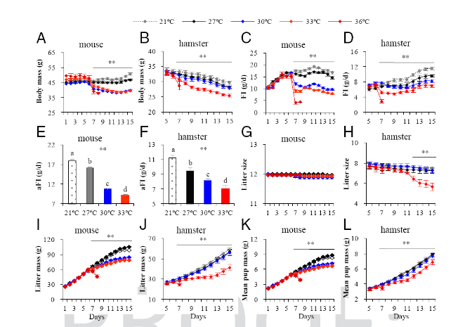 图:高温显著抑制了哺乳期能量摄入和繁殖输出