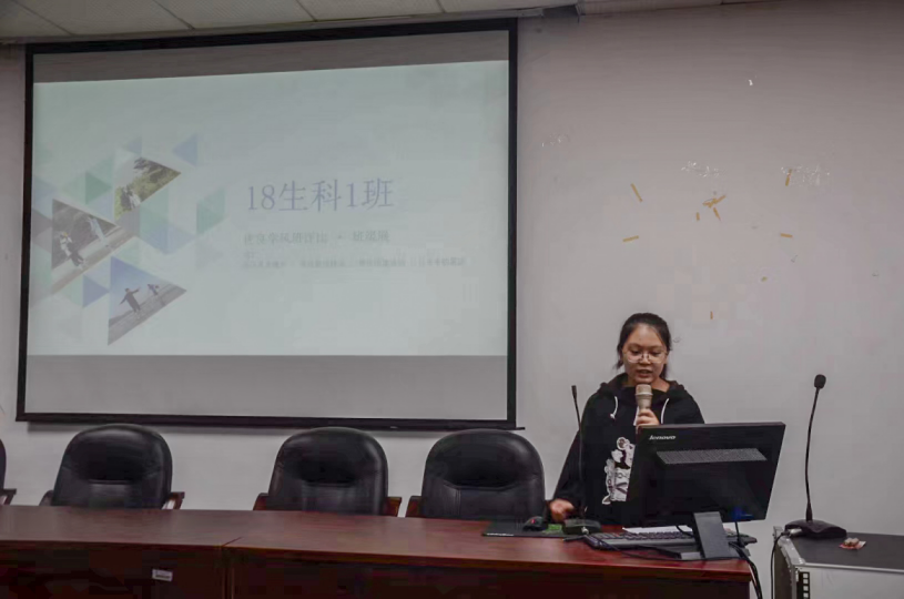大会首先由梁家琳老师宣读考勤制度与执行办法,其中包括考勤扣分说明,请假说明及其他考勤制度规定等,并说明“学习标兵”评选规则与“优良学风班”评选规则。然后是“学习标兵”的答辩环节。本次竞选学习标兵的人数共10人,各位候选人不仅成绩优异,获得大量荣誉,而且兴趣广泛,积极参与各种社会活动。其中,18环科赵意能在答辩中提到了对学习标兵的理解:“标兵必须是思想端正,态度积极,学习刻苦,认真负责的,拥有优秀的态度和辩证的思想,但也要意识到学习理论知识是基础前提,做实事才是着力点和落脚点,我们要把学习道德思想和实践相结合在实践中践行思想,发挥榜样作用,争做引路人。”19生科郑奇提到“你要铆足劲变好让自己变得更加优秀,然后旗鼓相当的站在自己不敢想象的人面前。你要变成你想象的样子,这件事,一步也不能让。”候选人们的答辩都让各位评委掌声连连。接着是“优良学风班”候选班进行答辩。本次竞选优良学风班的班级共6个,各班代表通过PPT的形式从学习、文体、党团、社会服务等方面自信大方的向大家展示了一个个优秀班级。18生科1班代表表示“优良学风班是每一班级都渴望得到的荣誉,也是建设一个不断追求进步的班级的原动力。”