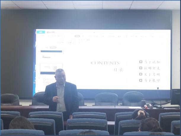 张永普老师就“谁的青春不迷茫,勤奋投入出真知”与我们展开了分享。就师范生的未来发展,他认为:学会开口,敢于和善于同老师交流是十分必要的;就个人目标的选择,他主张目标的设定不能好高骛远,要“跳一跳、摘苹果”,努力能争取;就考研复试的疑惑,他说:导师喜欢有思想、有科研素养的员工。张老师结合个人经历的真诚分享深深感染了每一位同学,隽永之言寓理于趣,使同学们在愉悦的氛围中体悟到了人生真谛。