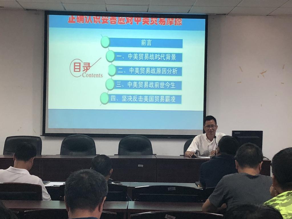 9月26日下午,公司在10B-202举办正确认识妥善应对中美贸易摩擦专题学习会。本次学习会公司党总支书记陈孟森主讲,太阳成集团tyc33455ccwww全院教师及部分研究生新生参加此次学习会。