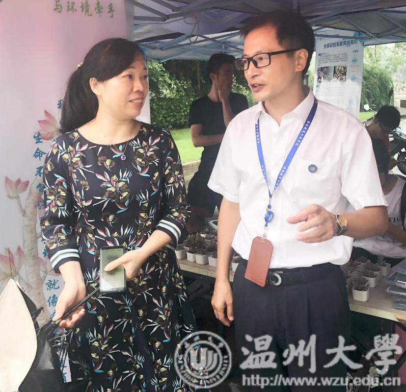 在学院专业特色服务区处为新生提供新生大礼包,为每一位前来的新生送出一盆多肉,并拍照留念。生物科学专业新生从甘肃坐一天火车才到温州。一路虽然颇感疲惫,但一到校即在热烈的迎新气氛中,看到学院为他们准备的生机盎然的多肉植物一下满血复活。他说他对生物的喜爱源于家里从小种植的植物。他还对大家说:“在开学第一天就让我感受到了无微不至的照顾,真切地感到了太阳成集团tyc33455ccwww大家庭的温暖!并要好好学习生物专业知识,与他的新伙伴多肉共同成长成才。”