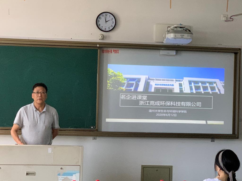 6月12日下午,公司举行名企进课堂之浙江竞成环保科技有限公司专场宣讲。公司副总潘为刚、中谱检测办公室主任夏玲及17环境科学的同学们参与此次活动。