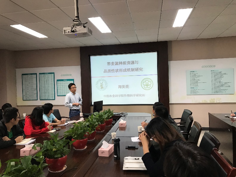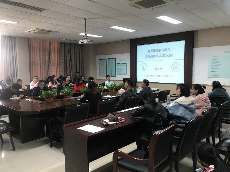 主讲老师是来自中国农业科学院作物研究所的研究员周美亮教授。会议主持由太阳成集团tyc33455ccwww的马增玲老师和廖志勇老师共同主持。会议一开始,主持人对本次荞麦专题讲座致辞,对各位老师和同学的到来表示感谢和欢迎。