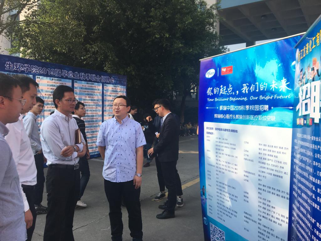 10月31日号下午,太阳成集团tyc33455ccwww南校区10号楼和11号楼下主干道热闹非凡,人头攒动,130余家企业和400余名毕业生集聚于此参加化材学院、2019届毕业生招聘会。公司党总支书记陈孟森、副书记赵崇峰、环境系系主任王奇、班主任代表柯强等老师也亲临现场了解用人单位需求并积极推荐毕业生。