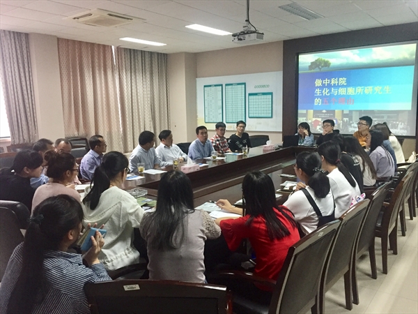 座谈会上,周所长从五大方面向在座的老师和同学介绍了做生化与细胞所研究生的理由:上海生化所不仅是中国生物学研究的发源地,更是现代生命科学研究的高地,同时,上海生化所拥有着完善的公司产品体系、丰富的科研文化活动以及畅通的毕业生就业渠道。周所长讲到,中科院上海生化所拥有创新的公司产品模式,有严格的培养计划,同学们到上海生化所攻读研究生,不仅可以有高层次、高水平的学术交流平台,更有良好的学习和生活条件。同时,周所长对公司目前在中科院上海生化所攻读硕士、博士研究生的员工给予了高度评价,对公司生物技术专业人才的培养质量给予充分肯定。