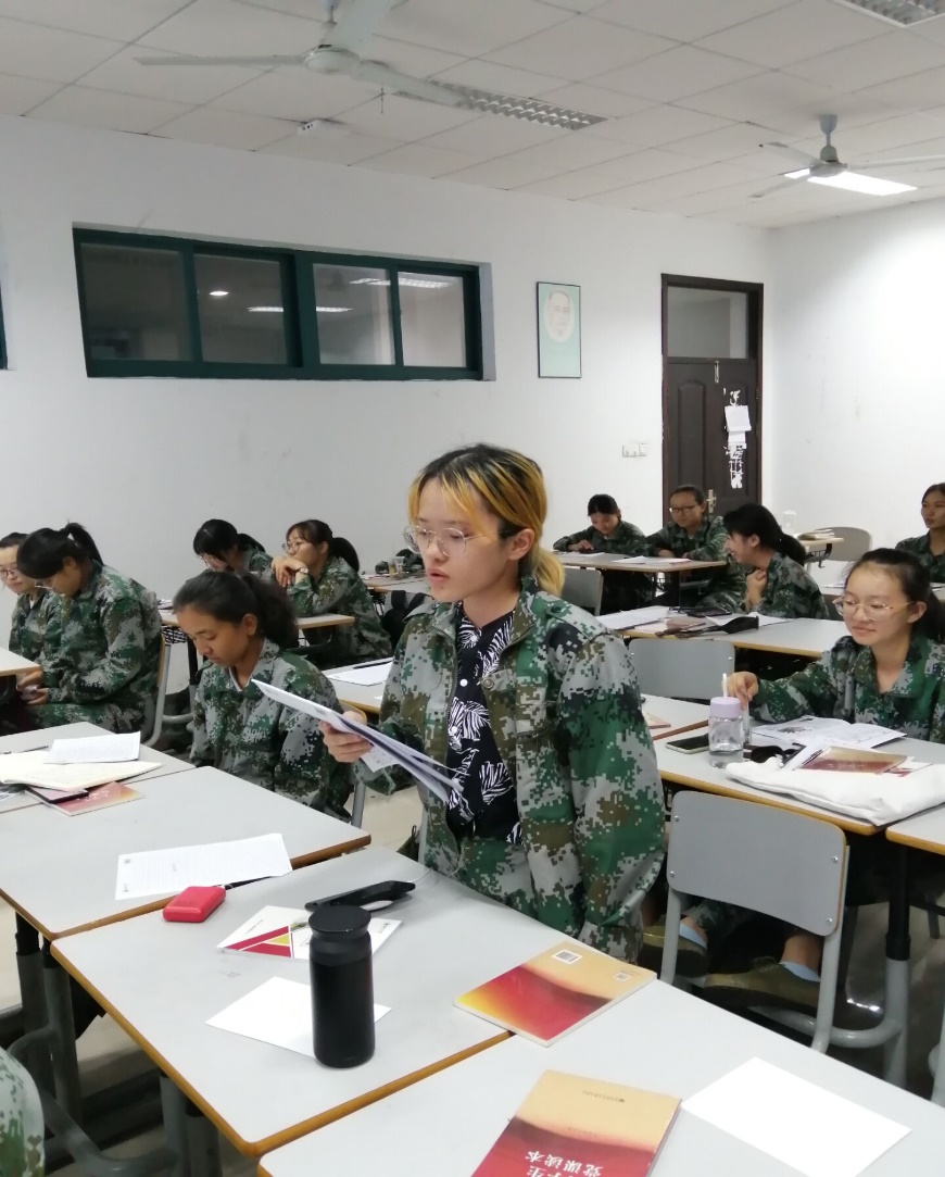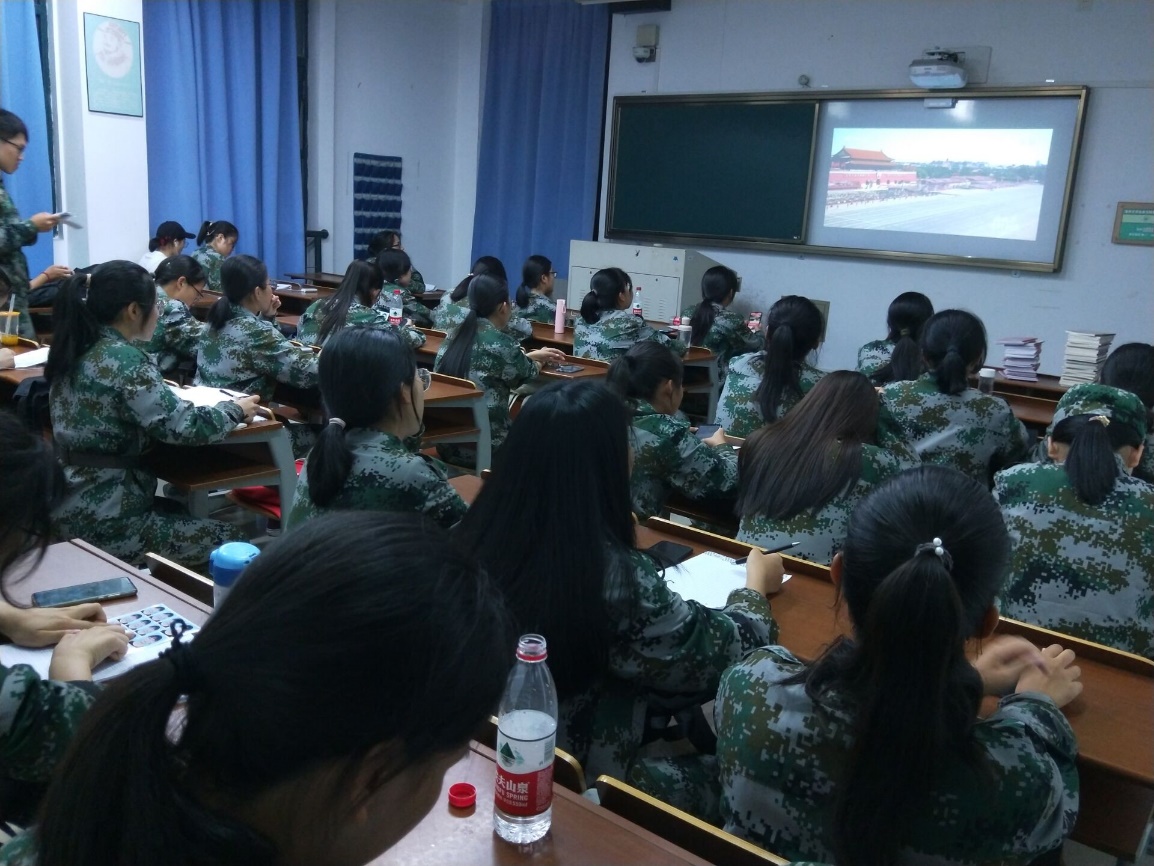 纪录片中习主席的亲切问候,军队士兵们铿锵有力的口号,高新科技的海空装备的浩大演习场景,让刚刚进行过军事训练的同学们受到了深深震撼, 一些同学不禁拾笔记录祖国强大的军事力量。同学们的爱国之心在《强军战歌》、《有我在》等铿锵有力的背景音乐中逐渐凝聚,大家深刻认识到强军是中国人民军队的主旋律,是最强音。同学们身为中国公民的自豪感油然升起。