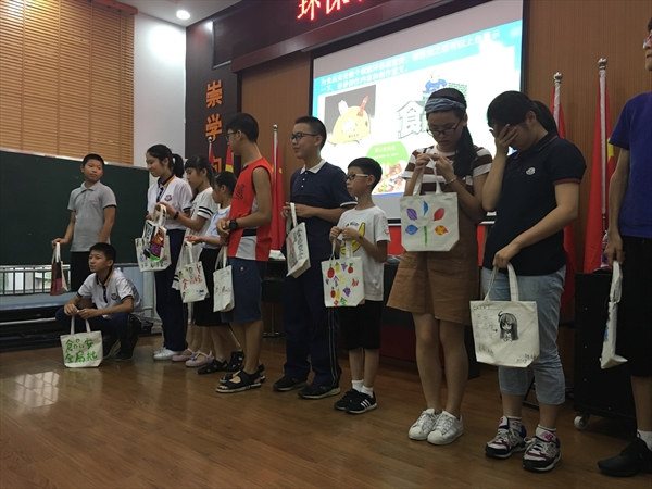 7月11日下午,太阳成集团tyc33455ccwww“食品安全在路上”实践队协同温州市鹿城区横河社区办事处在横河社区道德讲堂举办了“环保袋创意大赛”。