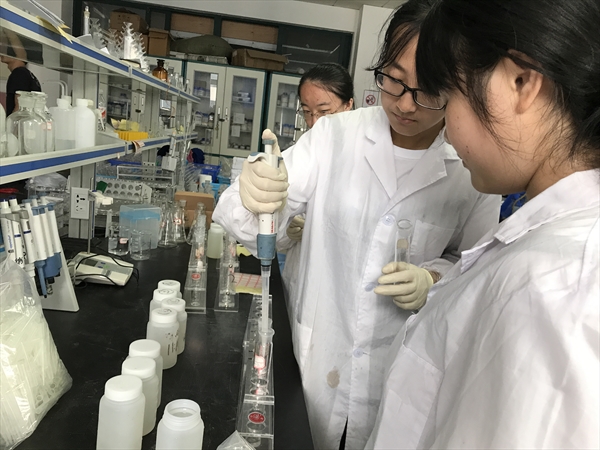 在实践的第一阶段,“生态之旅”暑期社会实践队分组前往在苍南,龙湾,梧田巡河问水,顶着烈日沿热气蒸腾的河岸采取水样。为确保水样信息真实有效,队员们用GPS定位记录取样地点,观察并拍摄取样点周边环境,为取样瓶编号标记并妥善保存于实验室。