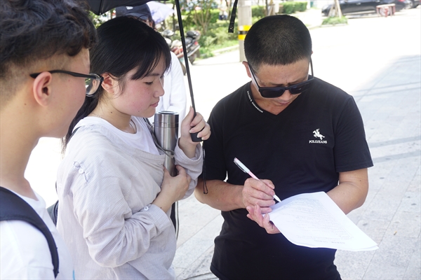 取样的同时,队员们在燥热的空气中穿行在各个街区,向周边居民发放调查问卷。为全面了解河流现状,每位队员都积极地与居民交流,普及“剿灭劣Ⅴ类水”相关知识,了解当地水情。队员们还与被采样河流的河长交流,了解治河历史与成效。最后近百份来自居民的调查问卷被汇总分析,居民们对治水效力的反馈在一列列数据中显露得淋漓尽致。