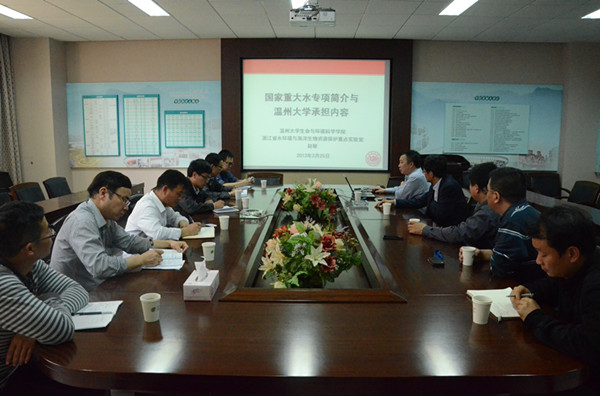4月15日,温州市委副秘书长、市委农办(市农业局)主任、局长王蛟虎一行5人莅临公司,与公司承担的“国家重大科技专项”项目——“生态友好型分散式污水处理技术研究与示范”项目团队成员座谈。