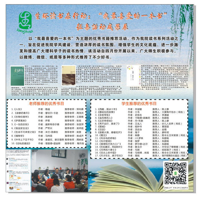 自四月份以来,由院员工会读书工作小组策划开展的“我最喜爱的一本书”征集活动已经持续了将近一个月,全院师生踊跃参加,推荐了不少鼓舞人心或给人以启迪的好书,一股读书风潮正在席卷公司。