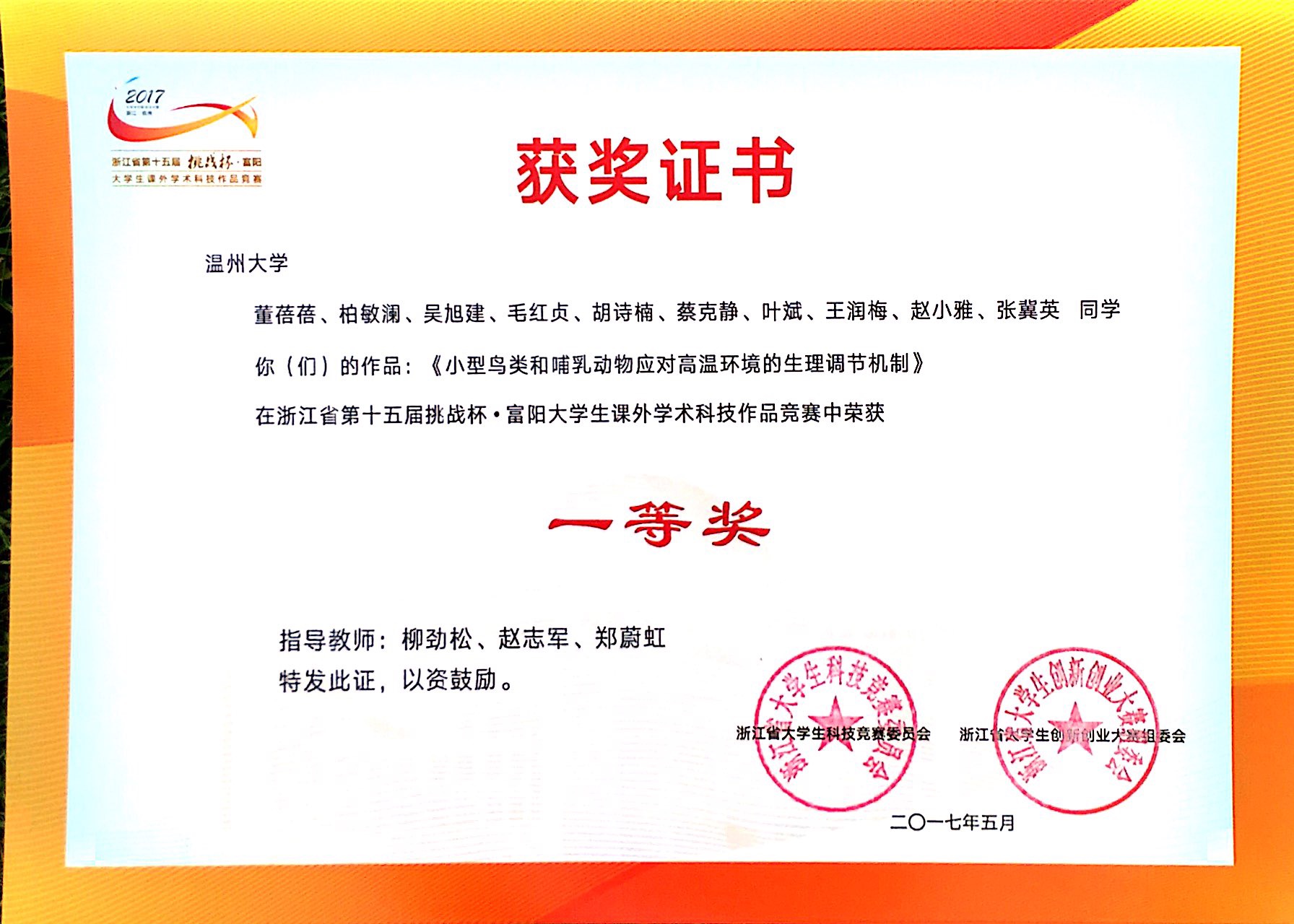 <!--[if gte mso 9]>MicrosoftInternetExplorer402DocumentNotSpecified7.8 磅Normal0<![endif]-->5月21日,浙江省第十五届“挑战杯·富阳”老员工课外学术科技作品竞赛在浙江工业大学落下帷幕。