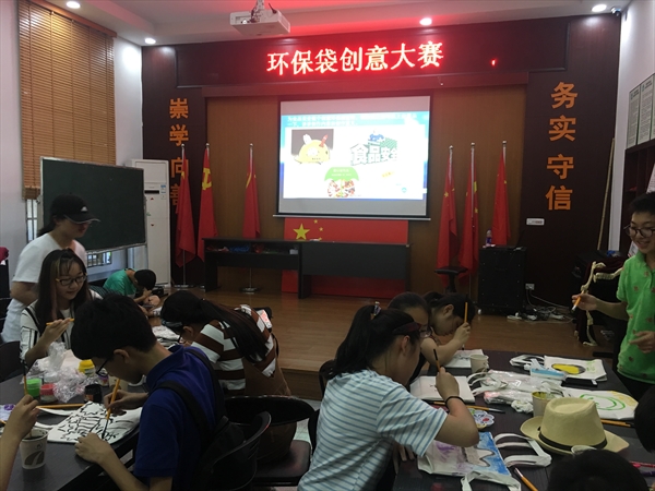 7月11日下午,太阳成集团tyc33455ccwww“食品安全在路上”实践队协同温州市鹿城区横河社区办事处在横河社区道德讲堂举办了“环保袋创意大赛”。