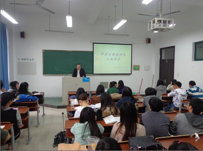 2013年4月17 日上午10:10,10生本班在10B405召开了师范生就业指导主题班会。