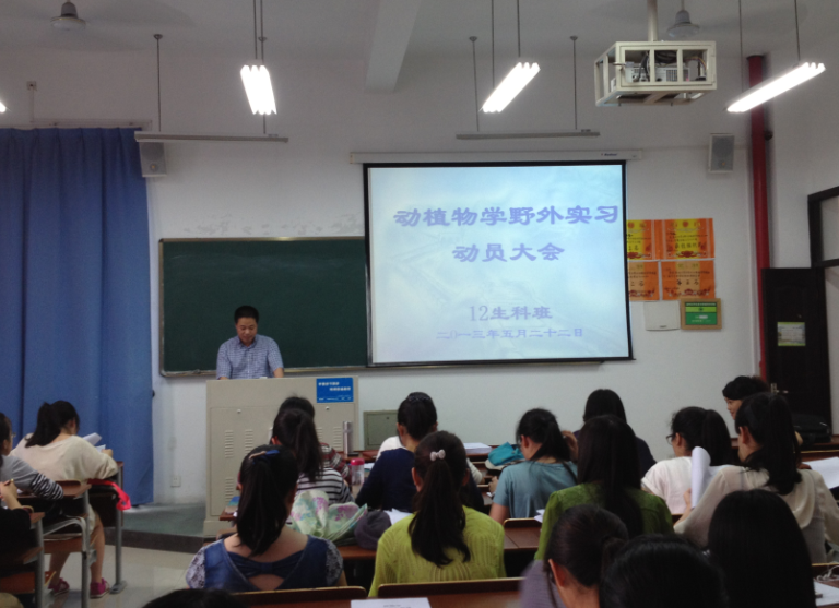 2013年5月22日星期三下午2点公司在11A-410召开了12级生科本动植物野外实习动员大会,参加此次动员大会的有副经理董新姣老师、系主任林国栋老师、实习组指导老师以及12生科本全体同学。