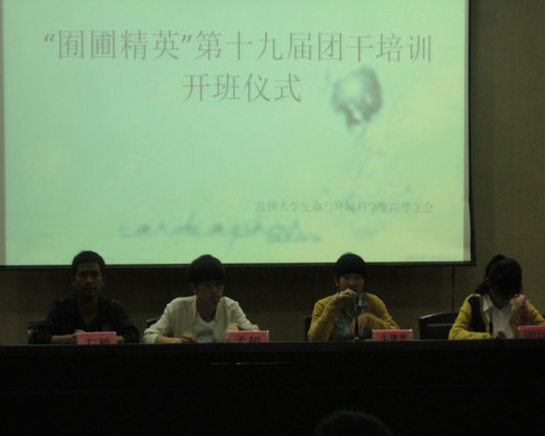 为了更好促进班级工作的开展,公司于2013年10月20日晚六点三十分在会展中心雁山厅举行团干培训的开班仪式。