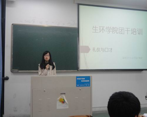 2013年11月1日晚上6点30分,在11A410教室开展以礼仪与口才为主题的团学干部培训讲座。
